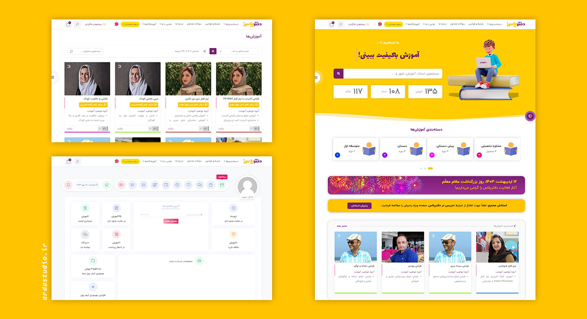 با افتخار نمونه کار طراحی وبسایت دفترپلاس را معرفی میکنم! این وبسایت منحصربهفرد برای تسهیل رزرو معلم خصوصی طراحی شده است و با بهرهگیری از اصول تجربه کاربری (UX) و رابط کاربری (UI) جذاب، محیطی کاربرپسند و حرفهای را ارائه میدهد.